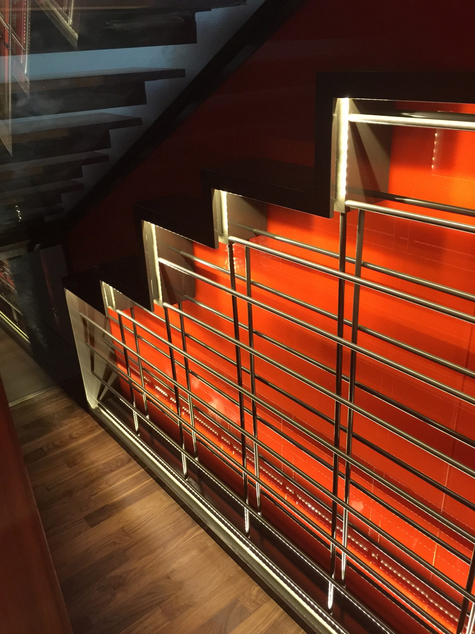 Concept: Required to blend in to the existing floating staircase, the cellar needed to ‘wow’ from under the floating steps and reveal the collections as one scaled the staircase.