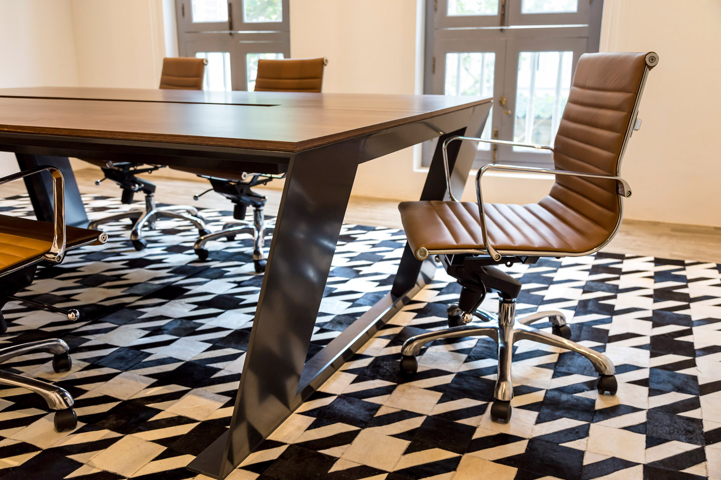 Finish: Rear coloured crystal glass, powder coated steel frame, Walnut veneer