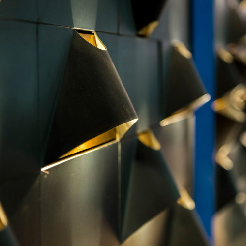 Bespoke light panel Dimensions Tile: 20cm x 40cm Panel: 160cm x 260cm Finish: Oxidised steel with blue wash, LED lighting Designer: Elliot Barratt / Francesca gabba Concept: Versatile lighting panels that can be...