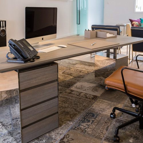 Bespoke rotating drawer Desk Dimensions 140cm x 60cm x 75cm Finish: Powder Coated steel, grey Designer: Elliot James Pte Ltd Concept: We wanted to create a desk with non-conventional drawers. As this...