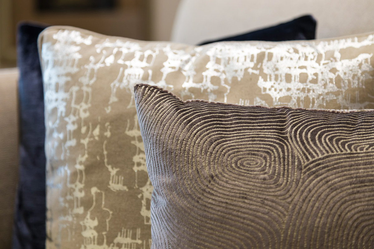 Wanting to preserve the architectural features of the building, we created a partition of glass with thin black framework to separate the various rooms. To inject a high-end aesthetic, we used luxurious metals and fabrics for the furniture and deep, rich colours. Working with Constructivity contractors, we created a simple paneled wall for the main office area and bespoke bookcase in rich blue for the library area. Over-sized, eclectic artwork provided drama, colour and impact against the simple background palette. We stripped back the flooring to the bare concrete and polished it up to a high-shine taking on a marble-like finish.